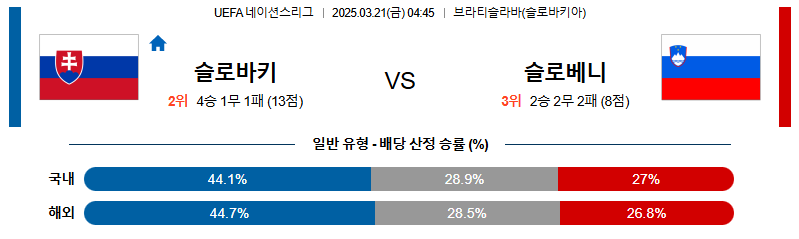 슬로바키아 대 슬로베니아 UEFA네이션스리그 03월21일 맞대결 생중계, 스포츠중계, 스포츠분석