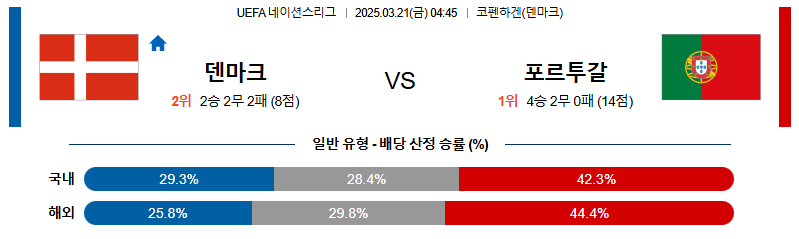 덴마크 대 포르투갈 UEFA네이션스리그 03월21일 맞대결 생중계, 스포츠중계, 스포츠분석