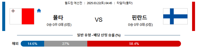 몰타 대 핀란드 월드컵예선전 03월22일 맞대결 생중계, 스포츠중계, 스포츠분석