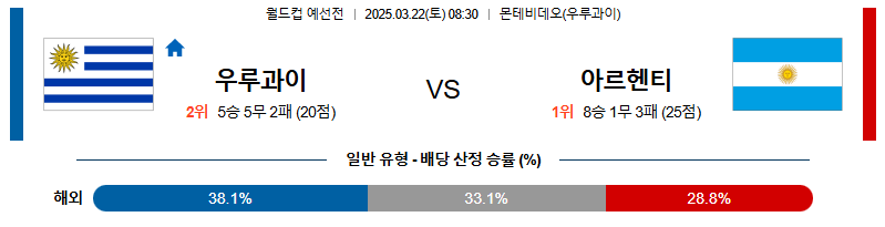 우루과이 대 아르헨티나 월드컵예선전 03월22일 맞대결 생중계, 스포츠중계, 스포츠분석