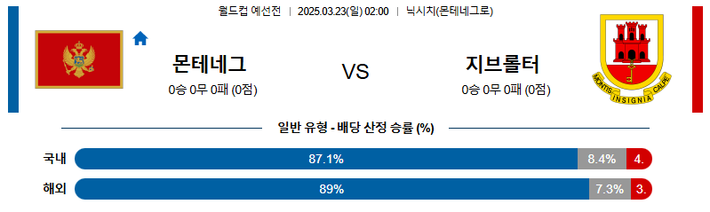몬테네그로 대 지브롤터 월드컵예선전 03월23일 맞대결 생중계, 스포츠중계, 스포츠분석