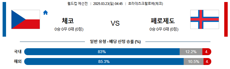 체코 대 페로제도 월드컵예선전 03월23일 맞대결 생중계, 스포츠중계, 스포츠분석