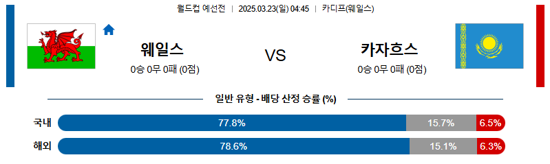 웨일스 대 카자흐스탄 월드컵예선전 03월23일 맞대결 생중계, 스포츠중계, 스포츠분석