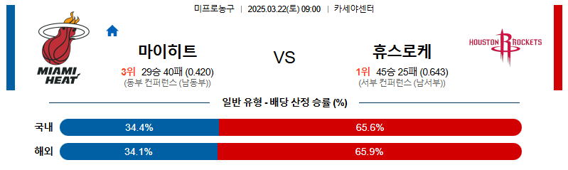 마이애미 대 휴스턴 NBA 03월22일 맞대결 생중계, 스포츠중계, 스포츠분석