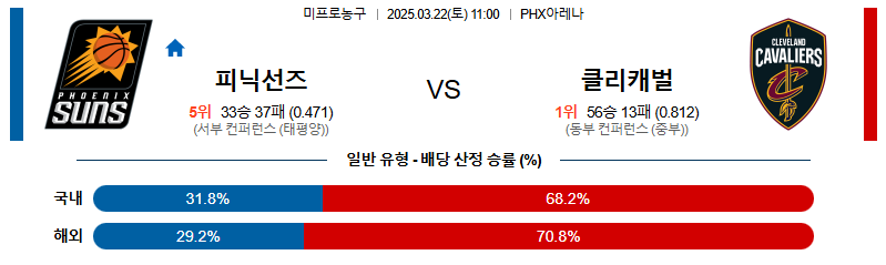 피닉스 대 클리블랜드 NBA 03월22일 맞대결 생중계, 스포츠중계, 스포츠분석
