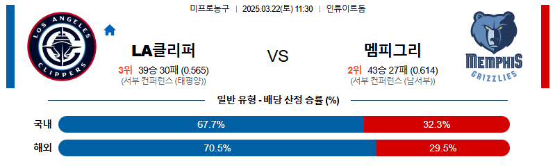 LA클리퍼스 대 멤피스 NBA 03월22일 맞대결 생중계, 스포츠중계, 스포츠분석