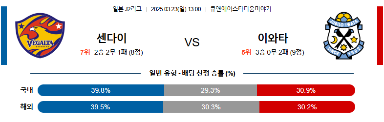 센다이 대 이와타 J리그2 03월23일 맞대결 생중계, 스포츠중계, 스포츠분석