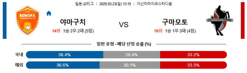 야마구치 대 구마모토 J리그2 03월23일 맞대결 생중계, 스포츠중계, 스포츠분석