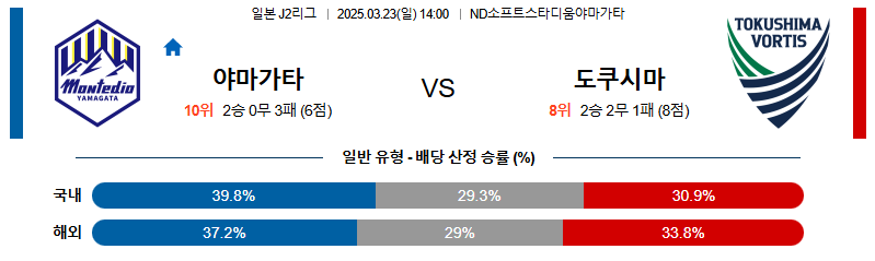 야마가타 대 도쿠시마 J리그2 03월23일 맞대결 생중계, 스포츠중계, 스포츠분석