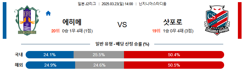 에히메 대 삿포로 J리그2 03월23일 맞대결 생중계, 스포츠중계, 스포츠분석