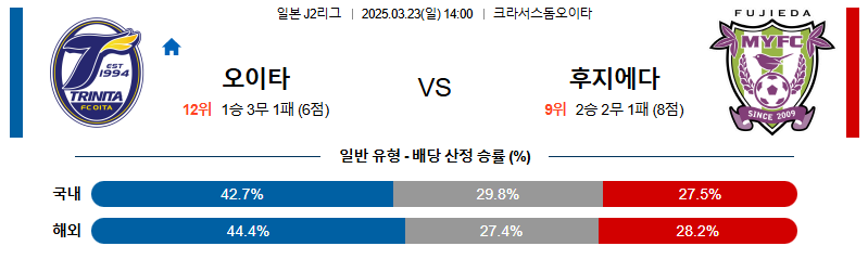 오이타 대 후지에다 J리그2 03월23일 맞대결 생중계, 스포츠중계, 스포츠분석