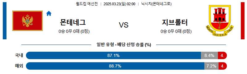 몬테네그로 대 지브롤터 월드컵예선전 03월23일 맞대결 생중계, 스포츠중계, 스포츠분석