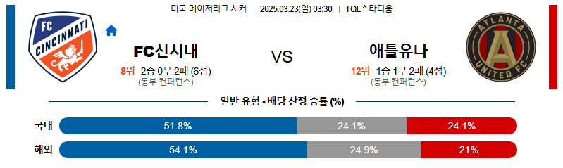 신시내티 대 애틀랜타 메이저리그사커 03월23일 맞대결 생중계, 스포츠중계, 스포츠분석