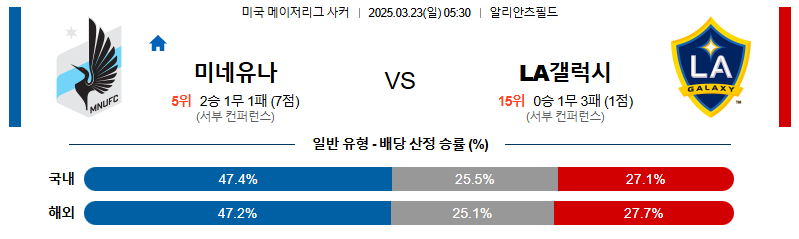 미네소타 대 LA갤럭시 메이저리그사커 03월23일 맞대결 생중계, 스포츠중계, 스포츠분석