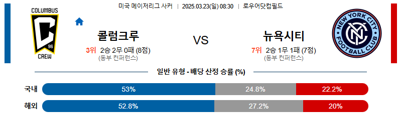 콜럼버스 대 뉴욕시티 메이저리그사커 03월23일 맞대결 생중계, 스포츠중계, 스포츠분석
