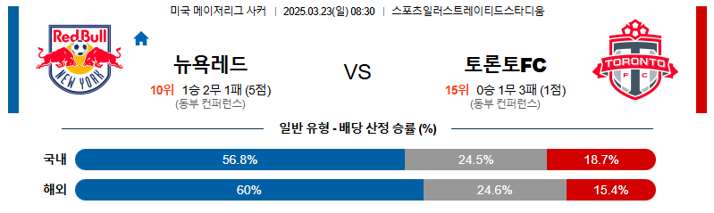 뉴욕레드 대 토론토 메이저리그사커 03월23일 맞대결 생중계, 스포츠중계, 스포츠분석