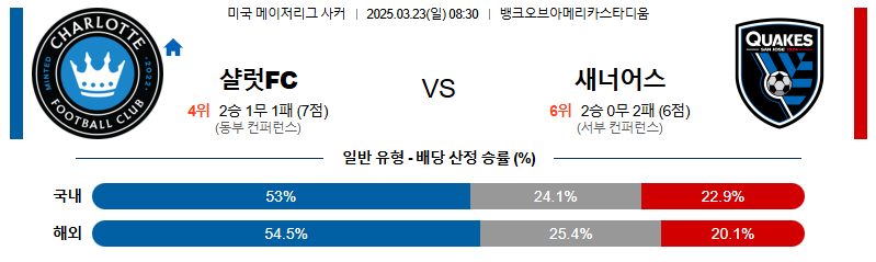 샬럿 대 산호세 메이저리그사커 03월23일 맞대결 생중계, 스포츠중계, 스포츠분석