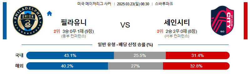필라델피아 대 세인트루이스 메이저리그사커 03월23일 맞대결 생중계, 스포츠중계, 스포츠분석