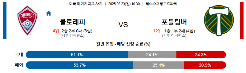 콜로라도 대 포틀랜드 메이저리그사커 03월23일 맞대결 생중계, 스포츠중계, 스포츠분석