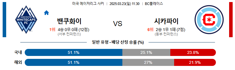 밴쿠버 대 시카고 메이저리그사커 03월23일 맞대결 생중계, 스포츠중계, 스포츠분석