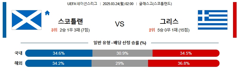 스코틀랜드 대 그리스 UEFA네이션스리그 03월24일 맞대결 생중계, 스포츠중계, 스포츠분석