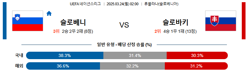 슬로베니아 대 슬로바키아 UEFA네이션스리그 03월24일 맞대결 생중계, 스포츠중계, 스포츠분석
