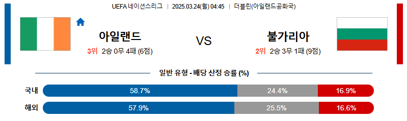 아일랜드 대 불가리아 UEFA네이션스리그 03월24일 맞대결 생중계, 스포츠중계, 스포츠분석