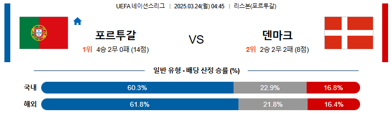 포르투갈 대 덴마크 UEFA네이션스리그 03월24일 맞대결 생중계, 스포츠중계, 스포츠분석