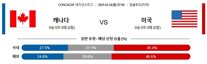 캐나다 대 미국 CON네이션스리그 03월24일 맞대결 생중계, 스포츠중계, 스포츠분석