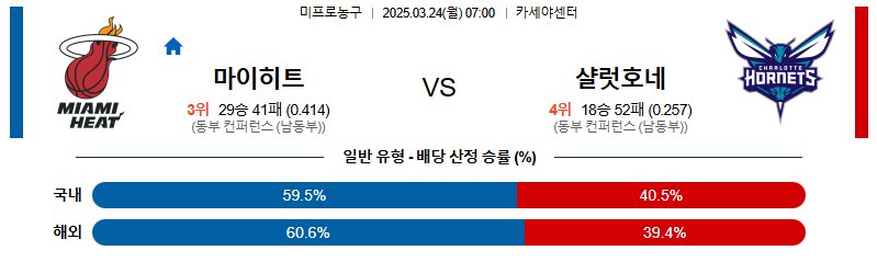 마이애미 대 샬럿 NBA 03월24일 맞대결 생중계, 스포츠중계, 스포츠분석