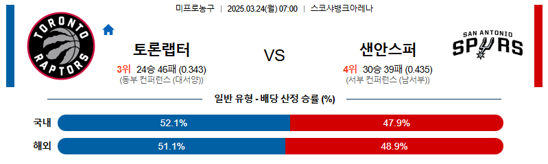 토론토 대 샌안토니오 NBA 03월24일 맞대결 생중계, 스포츠중계, 스포츠분석