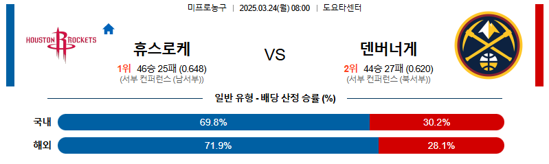 휴스턴 대 덴버 NBA 03월24일 맞대결 생중계, 스포츠중계, 스포츠분석