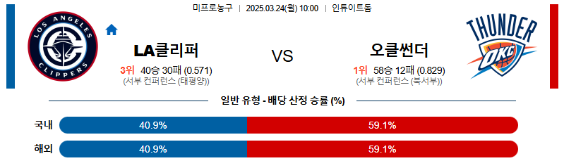 LA클리퍼스 대 오클라호마 NBA 03월24일 맞대결 생중계, 스포츠중계, 스포츠분석