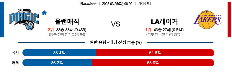 올랜도 대 LA레이커스 NBA 03월25일 맞대결 생중계, 스포츠중계, 스포츠분석