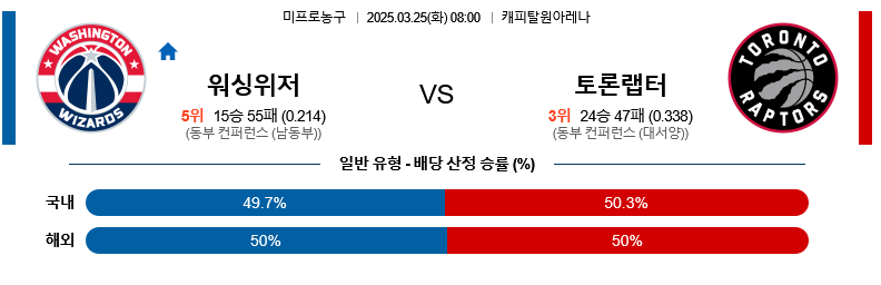 워싱턴 대 토론토 NBA 03월25일 맞대결 생중계, 스포츠중계, 스포츠분석