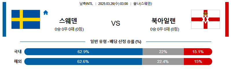 스웨덴 대 북아일랜드 남축INTL 03월26일 맞대결 생중계, 스포츠중계, 스포츠분석