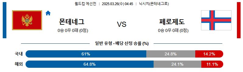 몬테네그로 대 페로제도 월드컵예선전 03월26일 맞대결 생중계, 스포츠중계, 스포츠분석