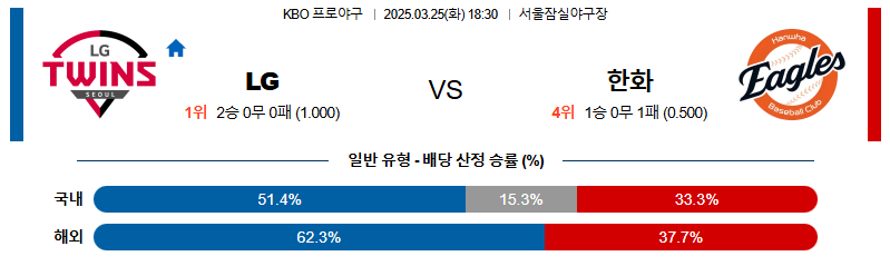 LG 대 한화 KBO 03월25일 맞대결 생중계, 스포츠중계, 스포츠분석