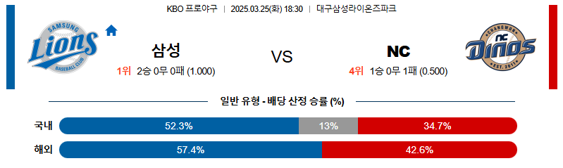 삼성 대 NC KBO 03월25일 맞대결 생중계, 스포츠중계, 스포츠분석