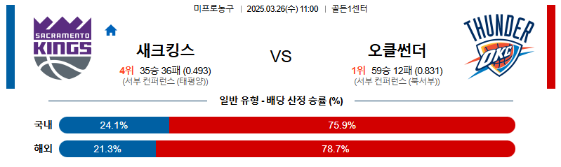 새크라멘토 대 오클라호마 NBA 03월26일 맞대결 생중계, 스포츠중계, 스포츠분석
