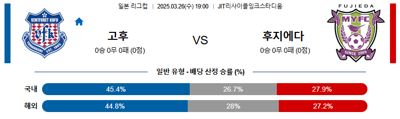 고후 대 후지에다 일본YBC르방컵 03월26일 맞대결 생중계, 스포츠중계, 스포츠분석