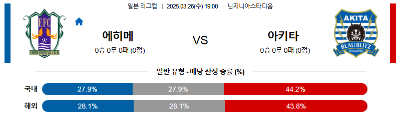 에히메 대 아키타 일본YBC르방컵 03월26일 맞대결 생중계, 스포츠중계, 스포츠분석