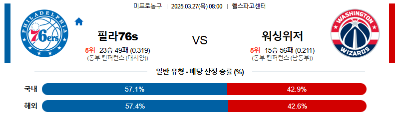 필라델피아 대 워싱턴 NBA 03월27일 맞대결 생중계, 스포츠중계, 스포츠분석