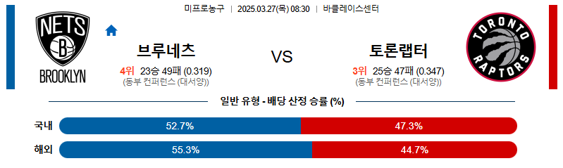 브루클린 대 토론토 NBA 03월27일 맞대결 생중계, 스포츠중계, 스포츠분석