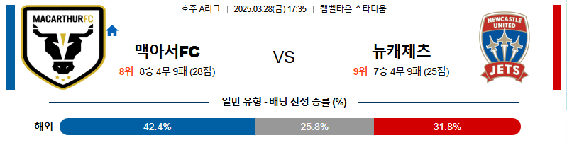 맥아서 대 뉴캐슬제츠 호주A리그 03월28일 맞대결 생중계, 스포츠중계, 스포츠분석