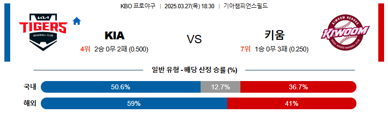 KIA 대 키움 KBO 03월27일 맞대결 생중계, 스포츠중계, 스포츠분석