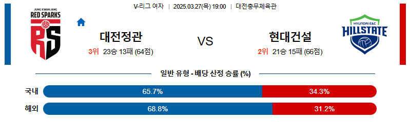 정관장 대 현대건설 V리그(여) 03월27일 맞대결 생중계, 스포츠중계, 스포츠분석