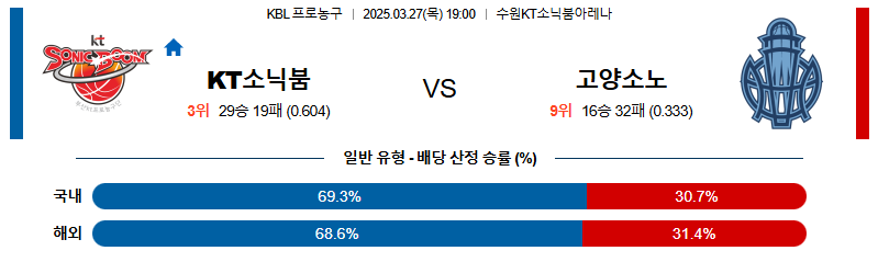 수원KT 대 고양소노 KBL 03월27일 맞대결 생중계, 스포츠중계, 스포츠분석