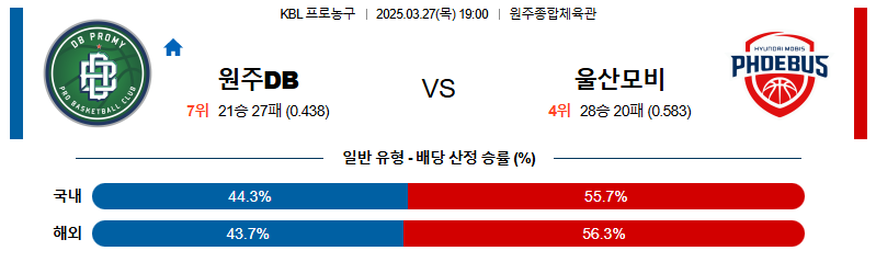 원주DB 대 울산현대모비스 KBL 03월27일 맞대결 생중계, 스포츠중계, 스포츠분석