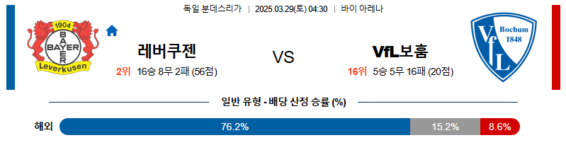 레버쿠젠 대 보훔 분데스리가 03월29일 맞대결 생중계, 스포츠중계, 스포츠분석